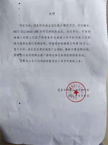 冠縣現(xiàn)代漁業(yè)園區(qū)提升建設(shè)項目廢標公告