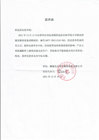六、廢標原因:成交供應商放棄成交資格,本項目廢標。