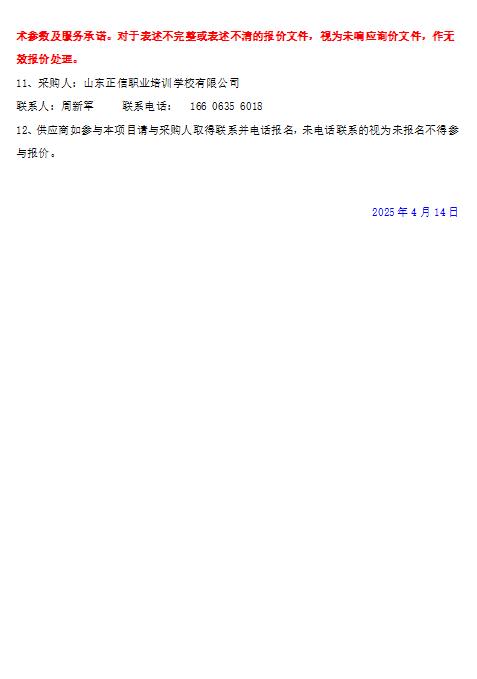 9、遞交報價文件時間及地點:2025年4月18日上午8:30—9:00 (逾期概不接收),交至綠業春大酒店六樓三會議室(聊城市開發區東昌路159號院內B座)。;