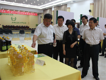 (集團董事長榮長遠向陳書記介紹“綠業春”調味品)
