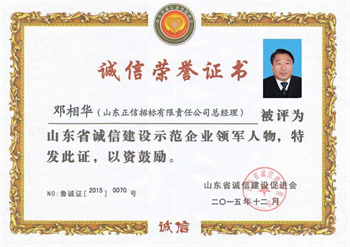 山東正信招標有限責任公司榮獲山東省誠信建設促進會頒發(fā)的山東省第三批誠信建設示范試點企業(yè),其總經(jīng)理鄧相華同志榮獲山東省誠信建設示范企業(yè)領軍人物稱號。今后,我公司將深入貫徹落實黨的十八大和十八屆五中全會以及山東省委、省政府關于加強社會誠信體系建設的決策部署,進一步加強企業(yè)的誠信建設,做好招投標誠信服務工作。(李璐)