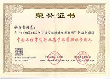 正信集團喜獲“中國百佳誠信招標代理機構”和 “中國工程咨詢行業德才雙馨職業經理人” 作者:正信招標集團 來源: 點擊:次 字號:大中小 在中國采購與招標網、中國名企排行網聯合舉辦的“2020第14屆全國招投標領域年度聚焦”活動中,山東正信招標有限責任公司榮獲“中國百佳誠信招標代理機構”,集團副總經理徐海霞榮獲“中國工程咨詢行業德才雙馨職業經理人”。 中國采購與招標網、中國名企排行網聯合于2020年3月份舉辦 “2020第14屆全國招投標領域年度聚焦”活動,經過企業書面申報,網上公開投票,資料最終審核等環節,最終確定獲獎名單,我公司成功榮獲企業和個人獎項。進一步提高了公司實力和對外知名度。 上一篇:聊城職業技術學院·山東正信集團戰略合作協議簽約儀式 下一篇:【成交喜訊】李太屯安置區二期、三期63套房產全部成交 分享到:QQ空間新浪微博騰訊微博人人網分享到微信朋友圈! ? ?