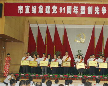 6月28日,在慶祝建黨91周年之際,聊城市市直紀念建黨91周年暨創先爭優表彰大會在東昌賓館小禮堂隆重召開。會議表彰了2011年以來在經濟和社會各項事業發展中涌現出的一大批基層黨組織、優秀共產黨員、黨務工作者和優秀紀檢干部。山東正信招標有限責任公司被授予“先進黨總支”榮譽稱號,公司副總經理鄧相華榮獲“優秀共產黨員”稱號。